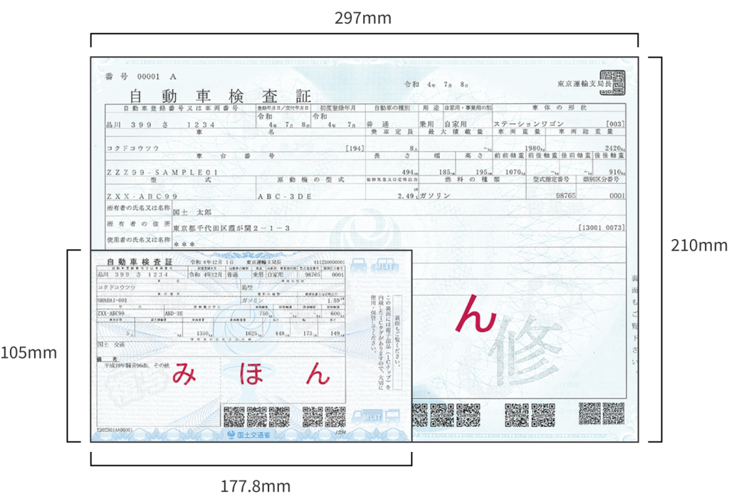 車検証のサイスは、A4からA6サイズとなり1/4のサイズになり、記載されている内容も大幅に削減されています。